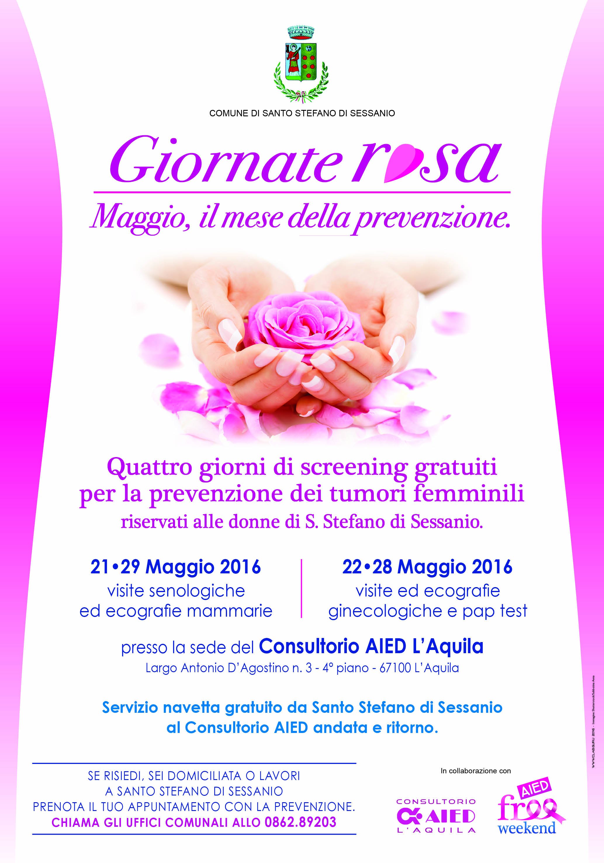 Il Comune di Santo Stefano di Sessanio, in collaborazione con il Consultorio AIED di L'Aquila, organizza quattro giorni di screening gratuiti per la prevenzione dei tumori femminili riservati alle donne di Santo Stefano di Sessanio.