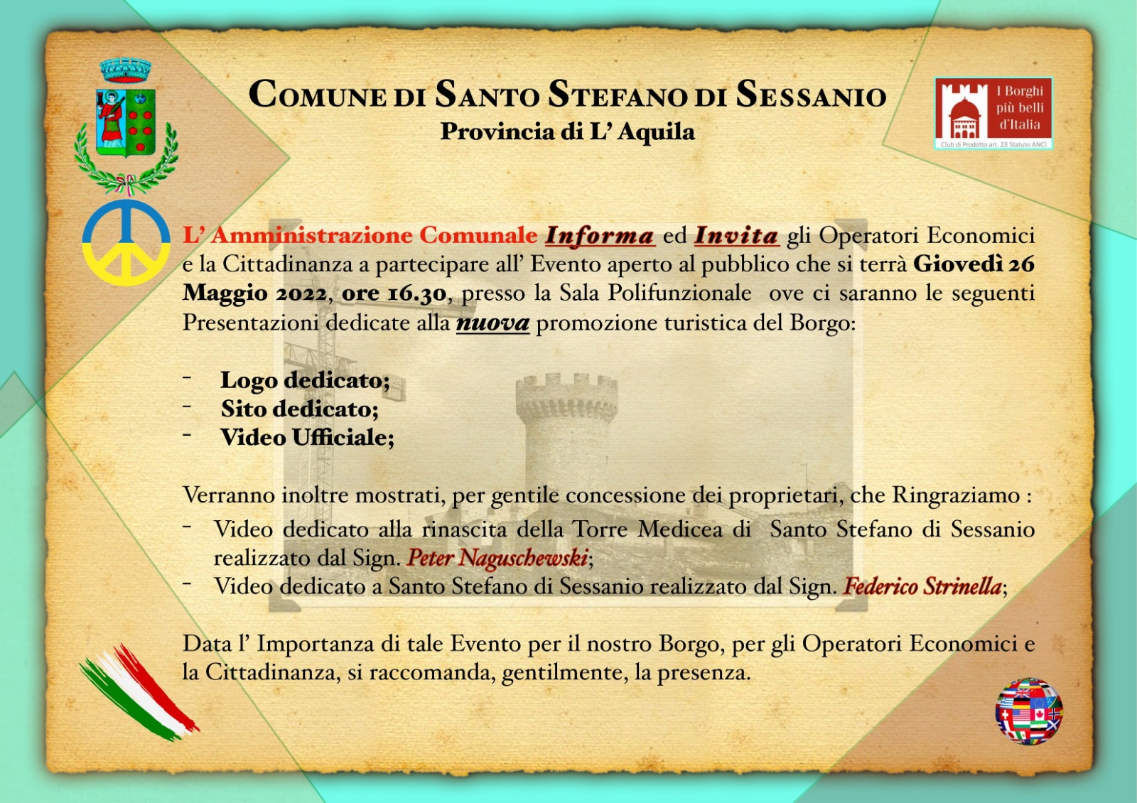 EVENTO PUBBLICO DEDICATO ALLA PRESENTAZIONE DELLA NUOVA PROMOZIONE TURISTICA DEL BORGO DI SANTO STEFANO DI SESSANIO