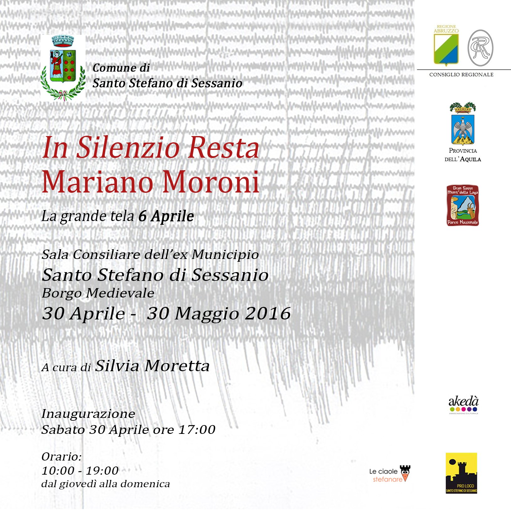 MOSTRA “IN SILENZIO RESTA” DI MARIANO MORONI - SANTO STEFANO DI SESSANIO - 30 APRILE – 30 MAGGIO 2016
